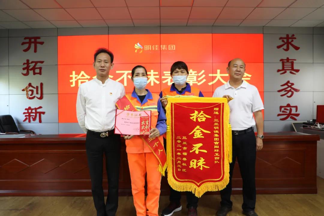 為表彰羅少女同志拾金不昧的精神,三亞明佳園林環(huán)衛(wèi)集團(tuán)有限公司于2021年2月25日 15:30時(shí),在集團(tuán)公司三樓會議室召開拾金不昧表彰大會。明佳集團(tuán)黨支部書記、董事長陳明,黨支部副書記、總裁陳云及20名員工代表參加會議。
