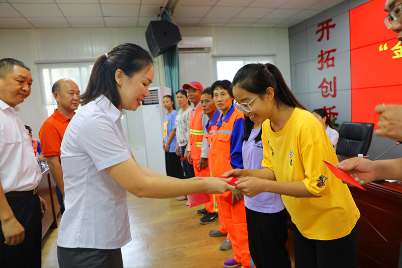 (工會主席高斐斐向?qū)W子發(fā)放助學金)