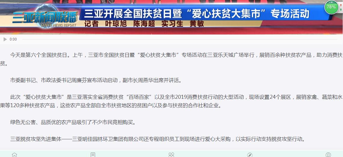 明佳集團作為三亞的本土企業(yè),主動扛起扶貧擔當,投身扶貧事業(yè),積極回報社會。在此次大采購活動中,集團員工在總裁陳云的帶領下,購買了4萬個雞蛋、玉米5大袋,還有一些雞、牛肉等農(nóng)副產(chǎn)品,合計金額約72600元。三亞日報和三亞新聞聯(lián)播分別對明佳集團的愛心大采購活動進行了報道。